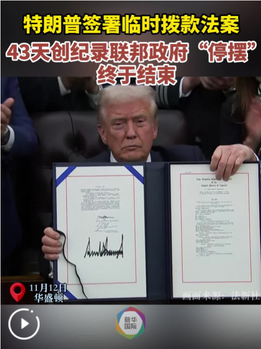 美國國會眾議院12日正式通過一項聯(lián)邦政府臨時撥款法案,總統(tǒng)特朗普當晚在白宮簽署該法案,從而結(jié)束已持續(xù)43天的創(chuàng)紀錄美國聯(lián)邦政府“停擺”。