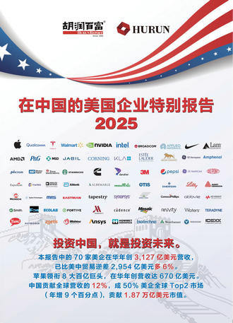 本報(bào)告結(jié)合了胡潤研究院對上述企業(yè)過往營收、企業(yè)價(jià)值的研究,并參考了《2024胡潤全球高質(zhì)量企業(yè)TOP1000》等既有成果,旨在探索這些企業(yè)在全球經(jīng)營及在華經(jīng)營中的成果、發(fā)展行動和發(fā)展環(huán)境的思考等,為在華發(fā)展的美國企業(yè)以及投資者的業(yè)務(wù)發(fā)展提供有價(jià)值的參考。