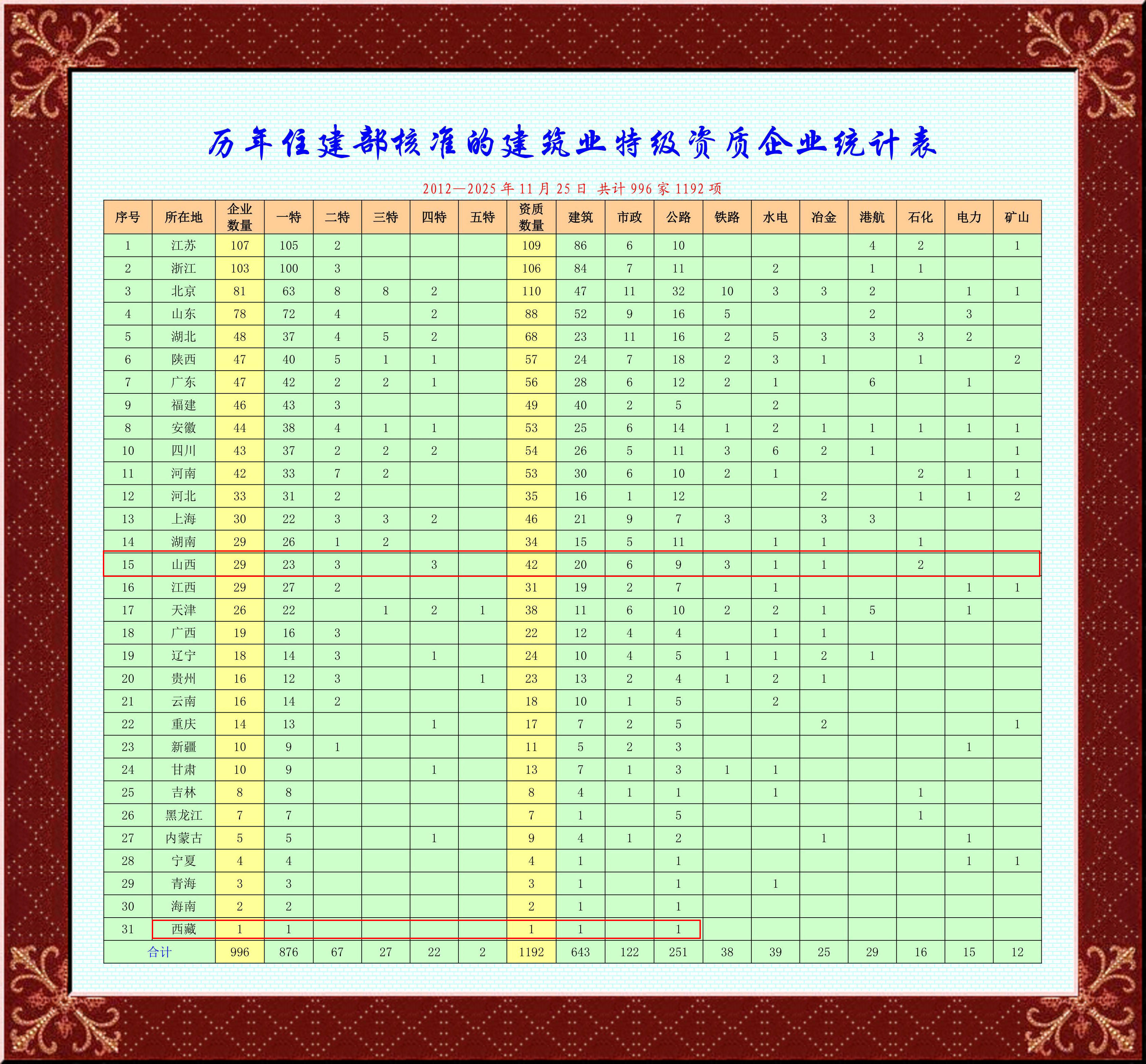 根據(jù)《中華人民共和國(guó)建筑法》及有關(guān)建設(shè)工程企業(yè)資質(zhì)管理規(guī)定,現(xiàn)將我部核準(zhǔn)的工程勘察資質(zhì)、工程設(shè)計(jì)資質(zhì)、建筑業(yè)企業(yè)資質(zhì)、工程監(jiān)理企業(yè)資質(zhì)的單位名單(2025年度第十一批)予以公布。未予核準(zhǔn)的單位可登錄住房城鄉(xiāng)建設(shè)部政務(wù)服務(wù)門戶,點(diǎn)擊“申請(qǐng)事項(xiàng)辦理進(jìn)度查詢(受理發(fā)證信息查詢)”欄目查詢?cè)颉?