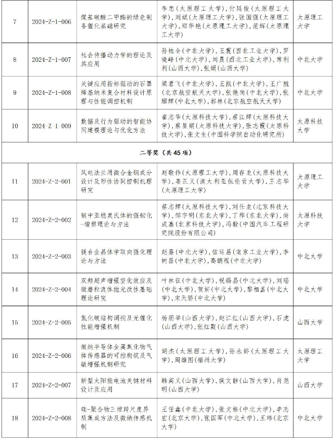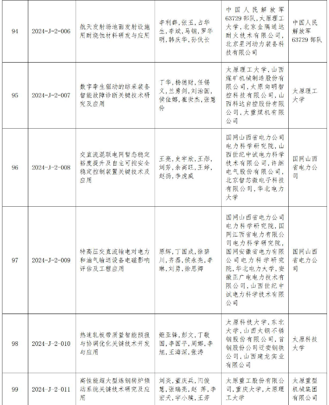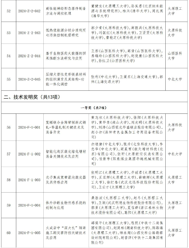 附件:2024年度山西省科學(xué)技術(shù)獎(jiǎng)授獎(jiǎng)項(xiàng)目(企業(yè))目錄