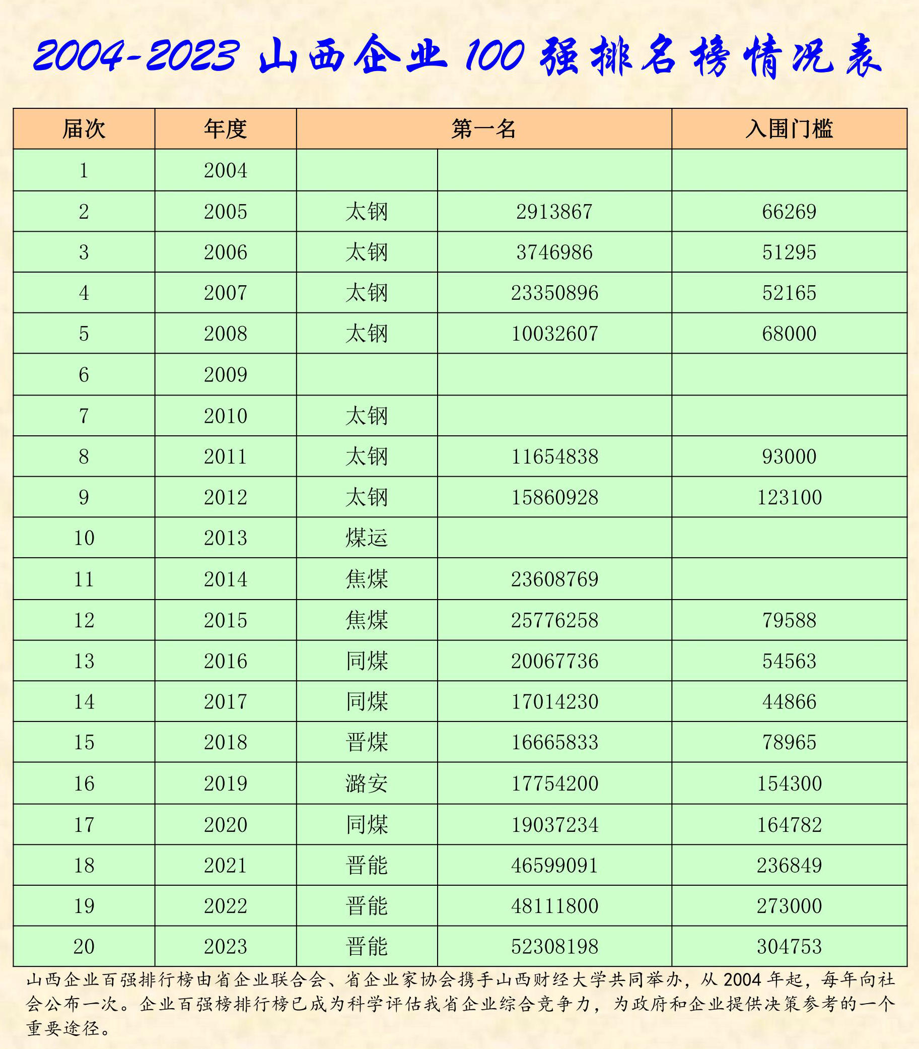 2023年山西企業(yè)100強(qiáng)排行榜