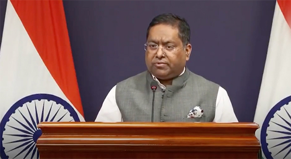 當?shù)貢r間10月16日,印度外交部發(fā)言人蘭迪爾·賈伊斯瓦爾主持新聞發(fā)布會。 視頻截圖