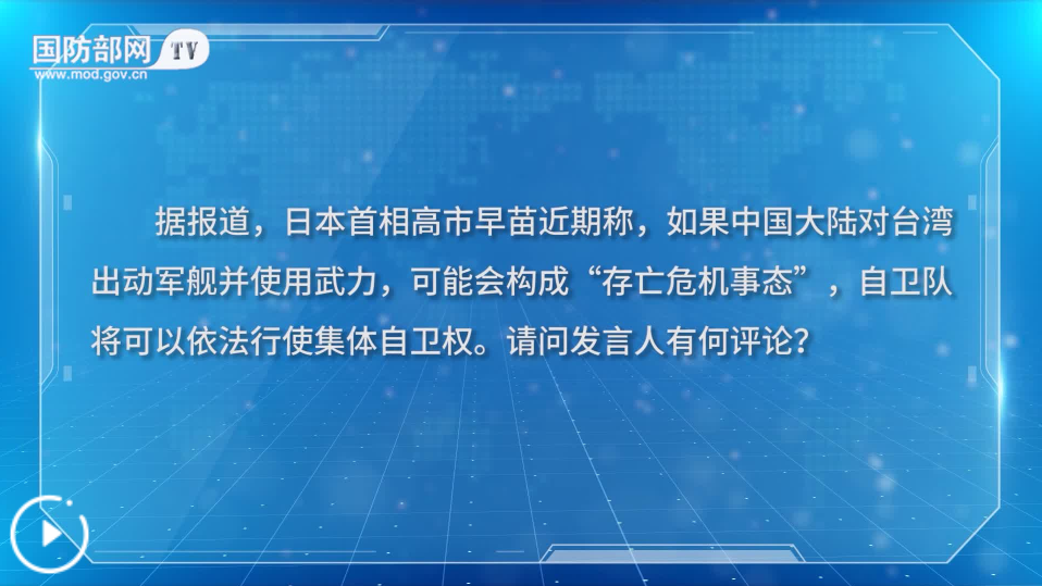 Question: It is reported that Japanese Prime Minister Sanae Takaichi recently said that if the Chinese mainland uses military vessels and other forces against Taiwan, it would cause a situation threatening Japan’s survival, and the Japanese Self-defense Force could exercise the right of collective self-defense in accordance with law. Do you have any comment?