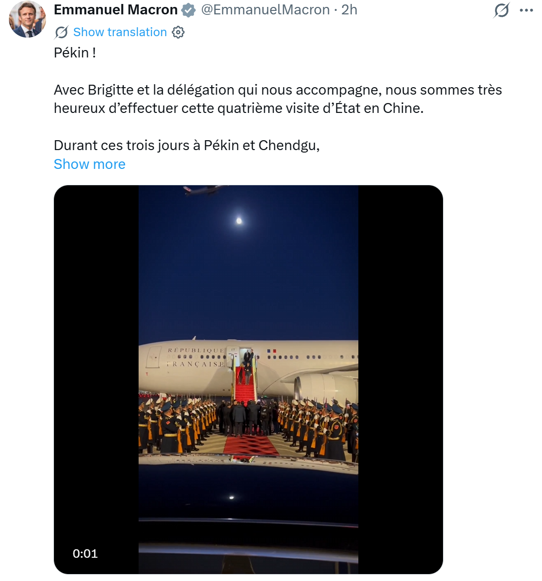 3日晚,馬克龍?jiān)谏缃黄脚_(tái)X發(fā)文稱,很高興對(duì)中國(guó)進(jìn)行第四次國(guó)事訪問(wèn)。