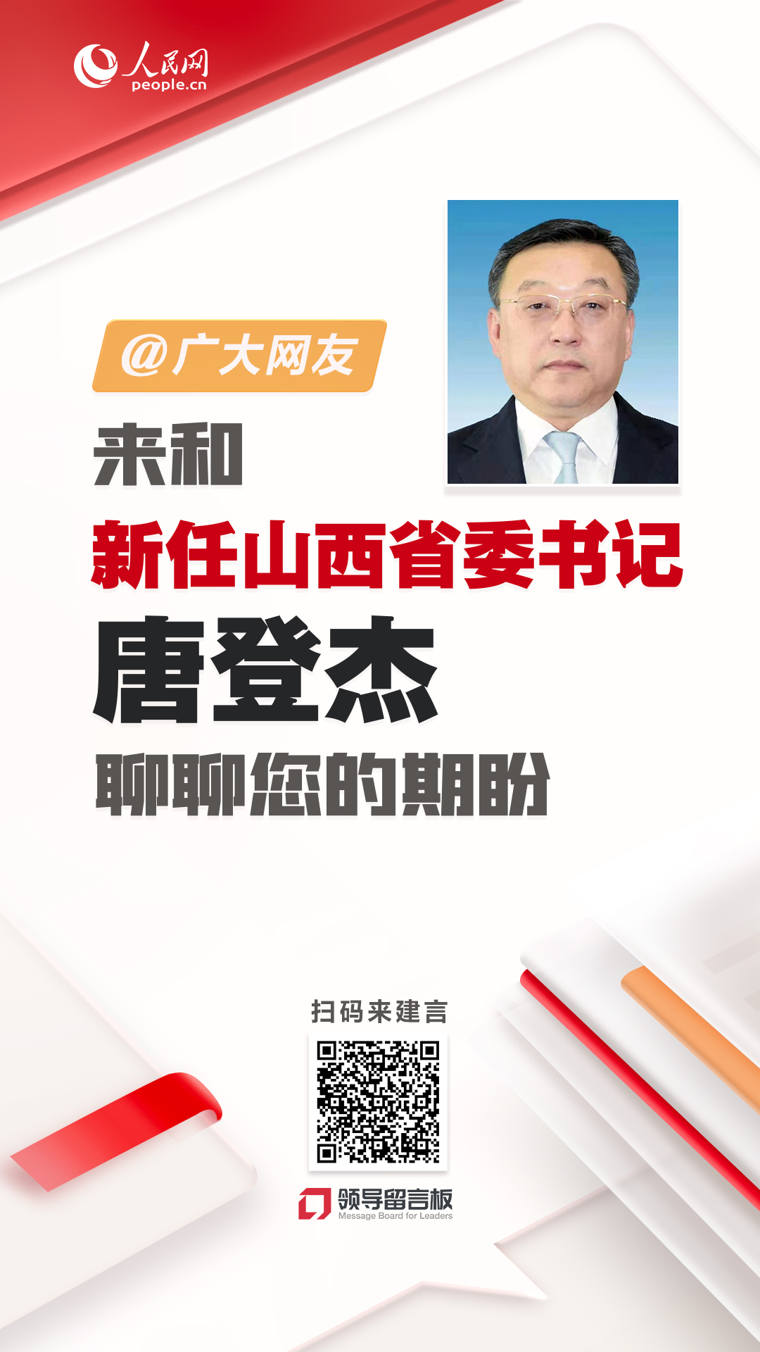 您對山西的發(fā)展有何建議和期盼?歡迎通過“領(lǐng)導(dǎo)留言板”留言,共同譜寫中國式現(xiàn)代化山西篇章。