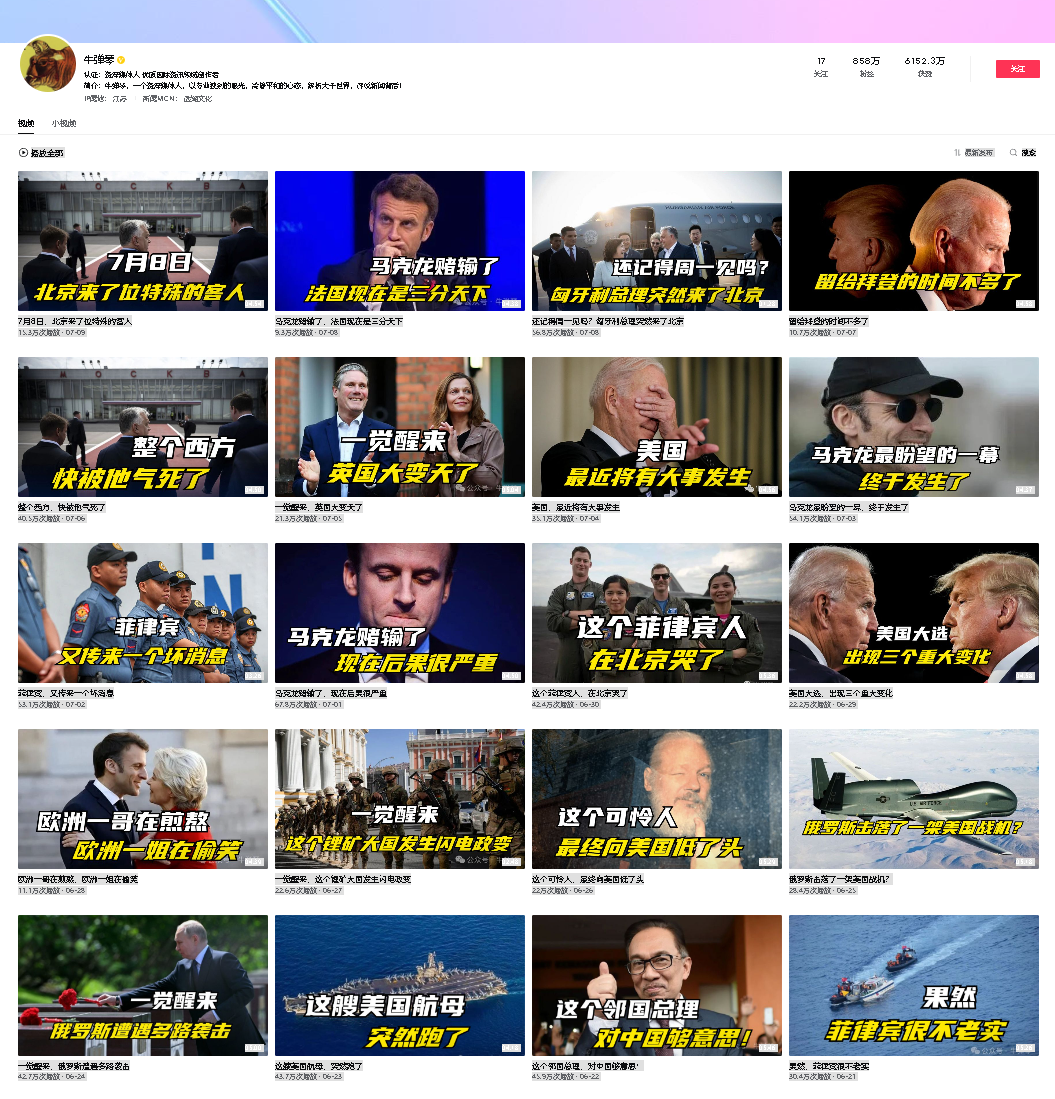 牛彈琴的博文和視頻,對(duì)世界和人類社會(huì)以及國(guó)際政治經(jīng)濟(jì),民族矛盾,軍事沖突,錯(cuò)綜復(fù)雜的利益關(guān)系展現(xiàn)出來,讓人們對(duì)事物發(fā)生發(fā)展的規(guī)律性認(rèn)識(shí),有一個(gè)思維的空間和研究,可謂是仁者見仁智者見智。