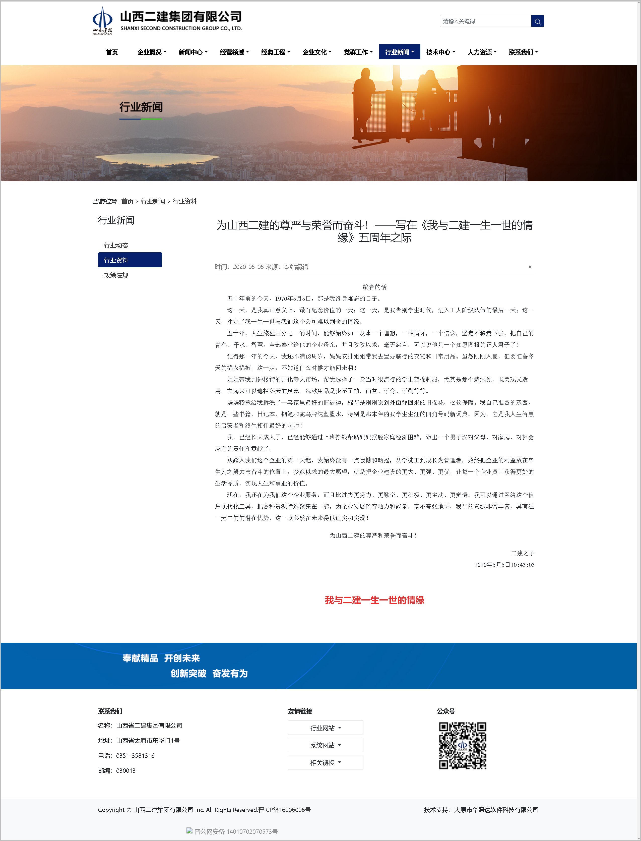今天,再度把我在山西二建網(wǎng)站發(fā)表過(guò)的文章帖出,是對(duì)華恒遠(yuǎn)過(guò)去、現(xiàn)在、未來(lái)的期望和展望,希望每一個(gè)能夠有緣在這個(gè)大家庭相聚的人們,把自己對(duì)企業(yè)的忠誠(chéng)發(fā)揮到成就人生的高度,走好這條通往實(shí)現(xiàn)所有愿望和希望的大道,為未來(lái)的自己創(chuàng)造無(wú)怨無(wú)悔的明天!