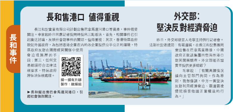 長(zhǎng)和事件持續(xù)熱議 各界吁算好國家發(fā)展大賬 “營商不顧國家利益,終究會(huì)自毀基石”2025-03-26