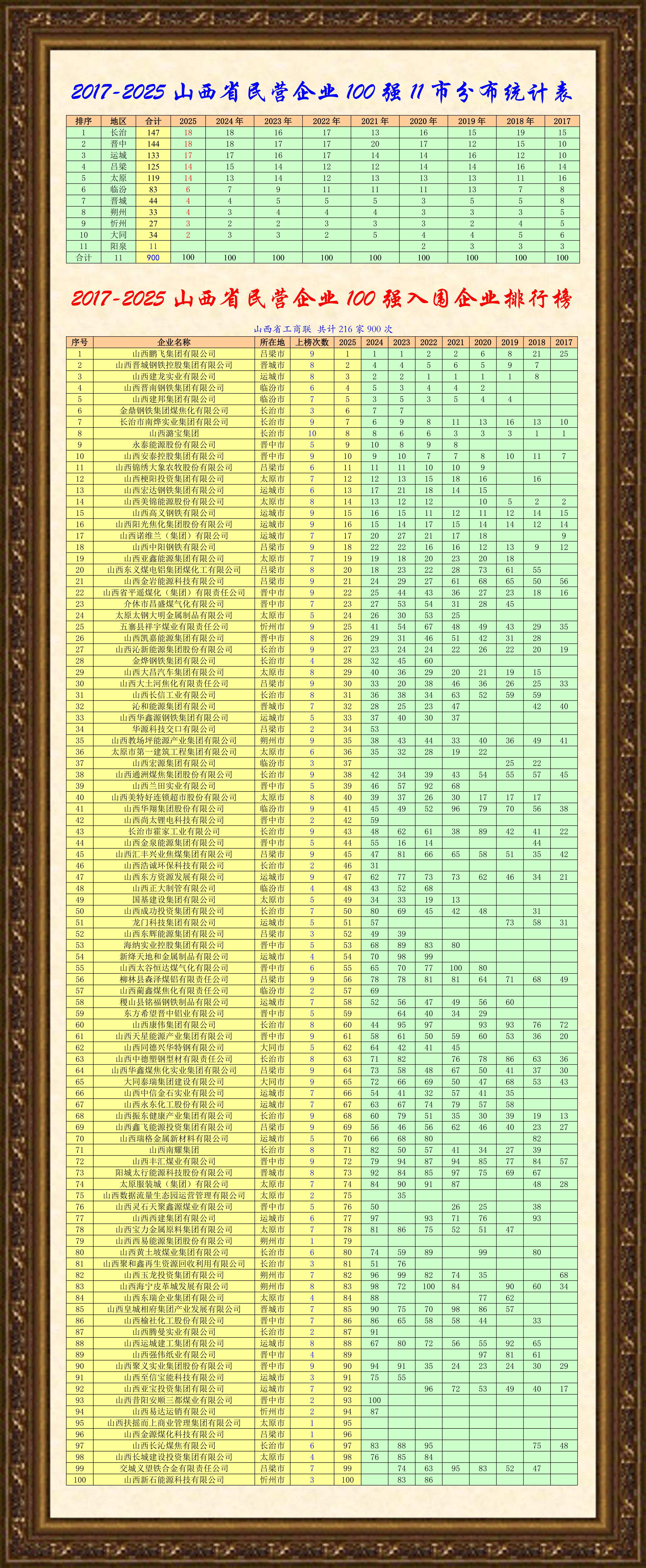 省工商聯(lián)從2017年開始公布“山西省民營企業(yè)100強(qiáng)榜單”,今年是第九年,前后有216家企業(yè)上榜,他們是山西經(jīng)濟(jì)社會發(fā)展和人民生活提高的重要支撐,我們理所應(yīng)當(dāng)大力宣傳他們的功績!讓全社會更加熱愛他們,支持他們,幫助他們,在新的征程上攻堅克難,艱苦奮斗,把企業(yè)做得更大更強(qiáng),為中國式現(xiàn)代化做出更大的貢獻(xiàn)!