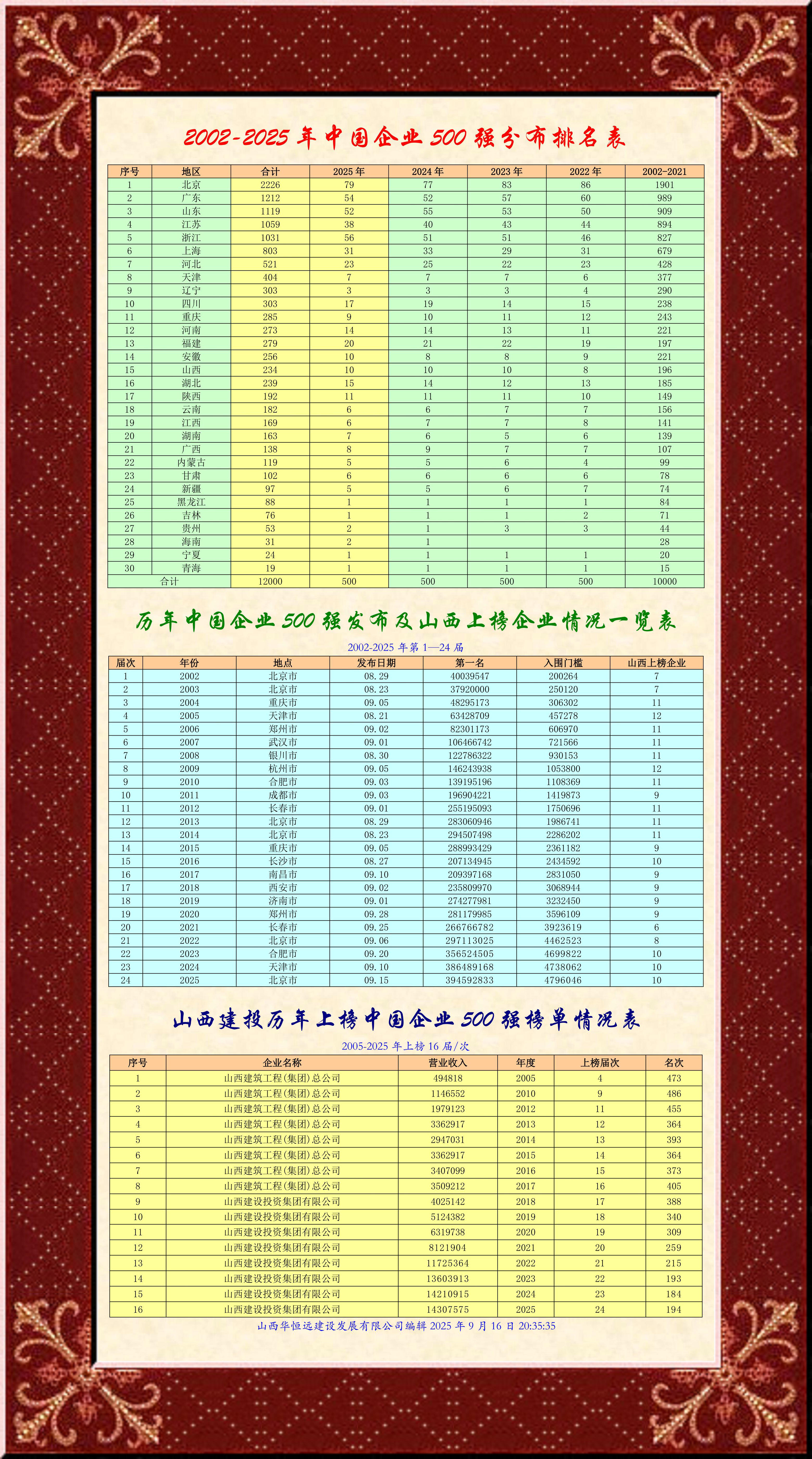 2002-2025中國企業(yè)500強(qiáng)分布排名表