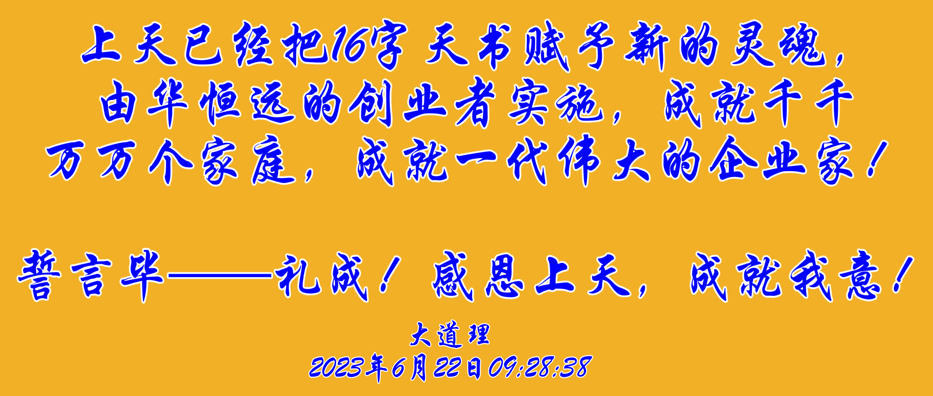 上天已經(jīng)把16字天書賦予新的靈魂,由華恒遠(yuǎn)的創(chuàng)業(yè)者實施,成就千千萬萬個家庭,成就一代偉大的企業(yè)家!