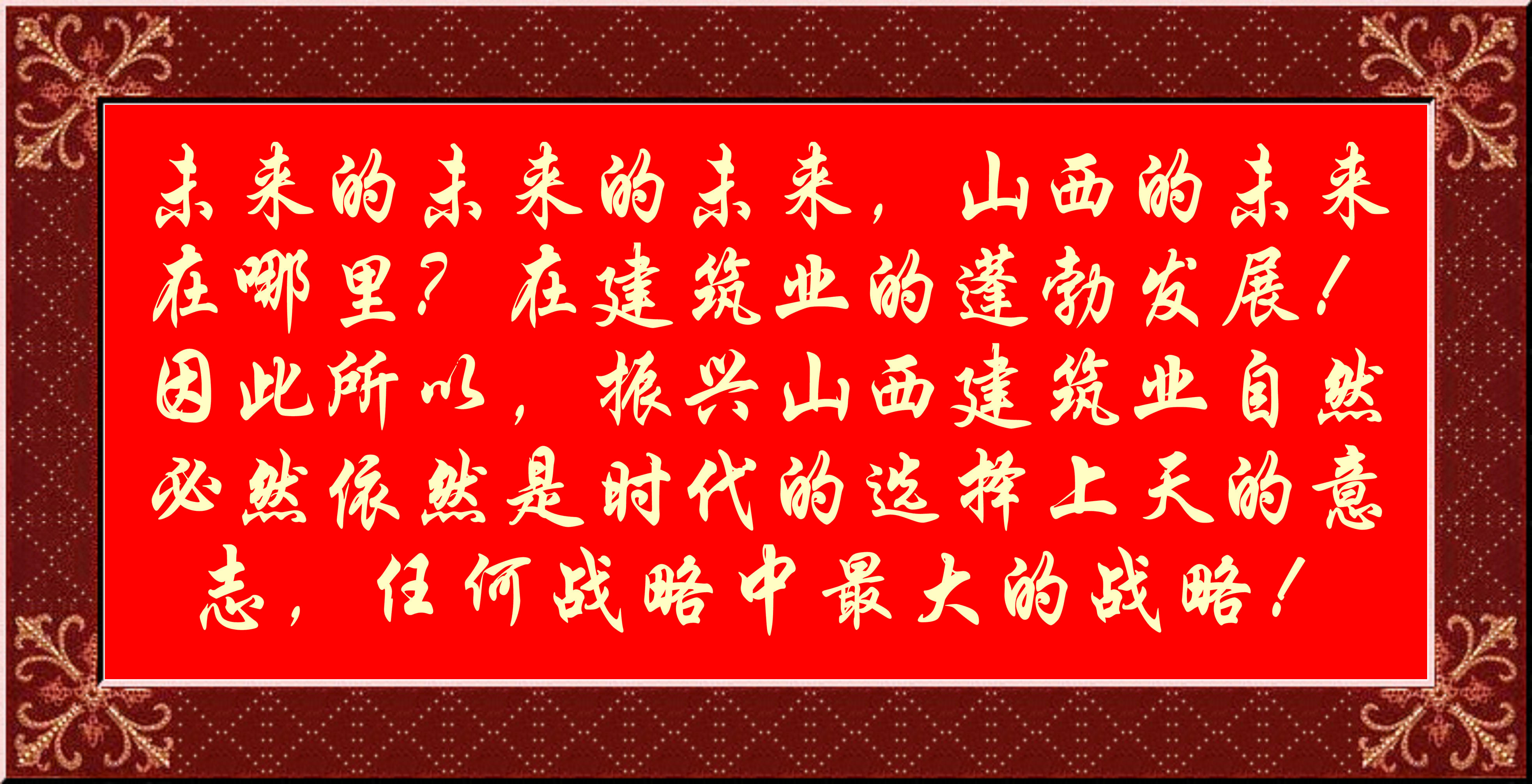 未來的未來的未來,山西的未來在哪里?在建筑業(yè)的蓬勃發(fā)展!因此所以,振興山西建筑業(yè)自然必然依然是時(shí)代的選擇上天的意志,任何戰(zhàn)略中最大的戰(zhàn)略!