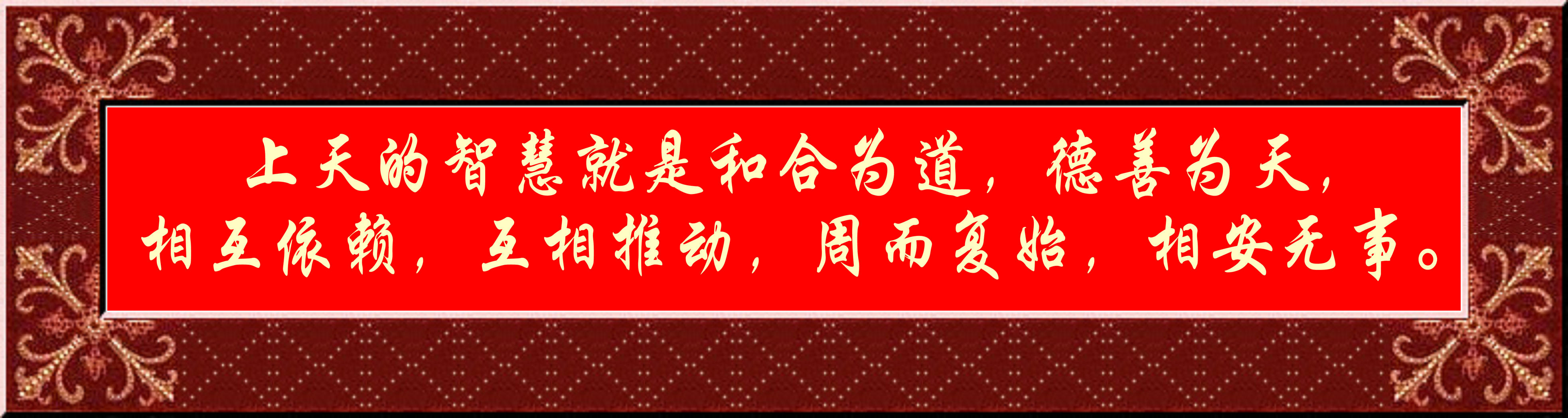 上天的智慧就是和合為道,德善為天,相互依賴,互相推動,周而復(fù)始,相安無事。