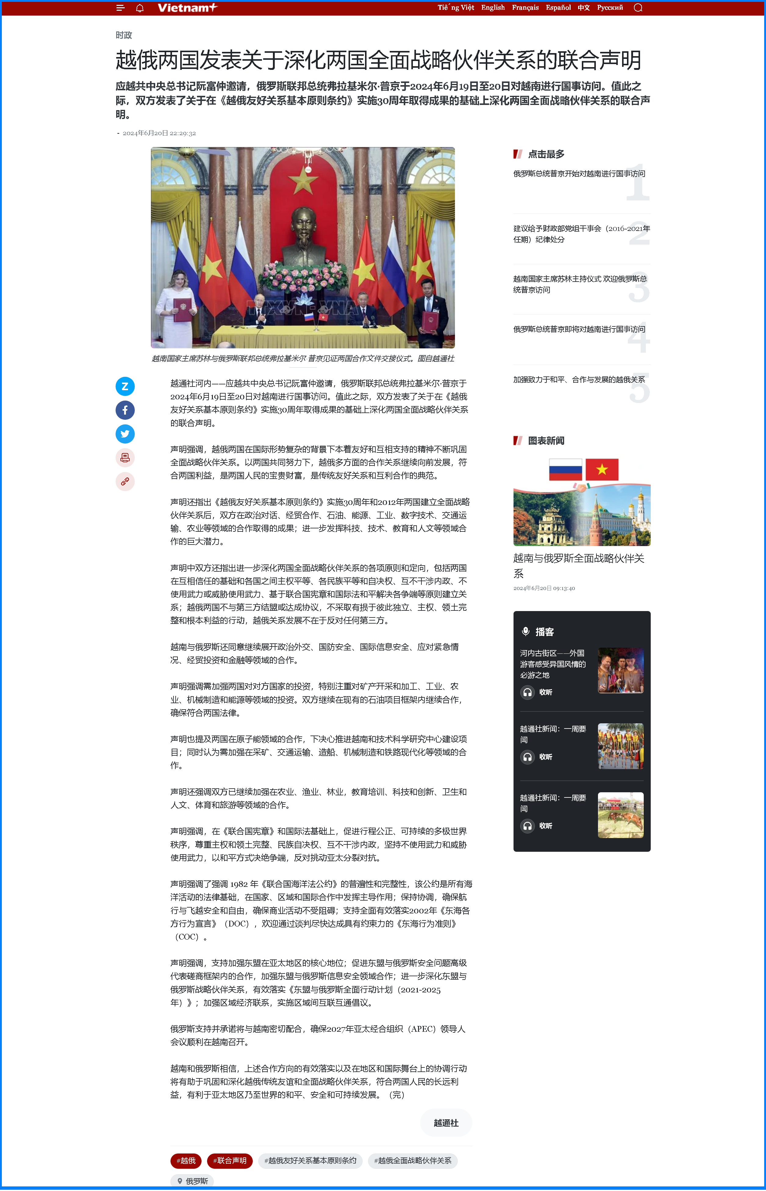 俄羅斯和越南領(lǐng)導(dǎo)人會(huì)談要點(diǎn)